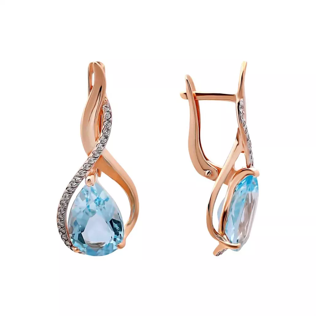 Серьги с топазом и фианитом из золота
