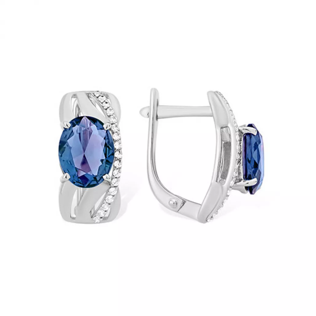 - Серьги с топазом и фианитом из серебра