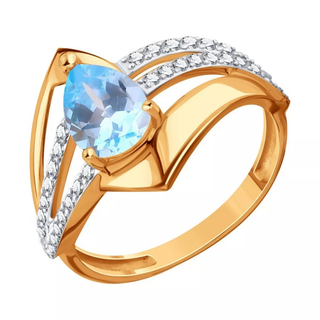 Кольцо с фианитом и топазом из золота